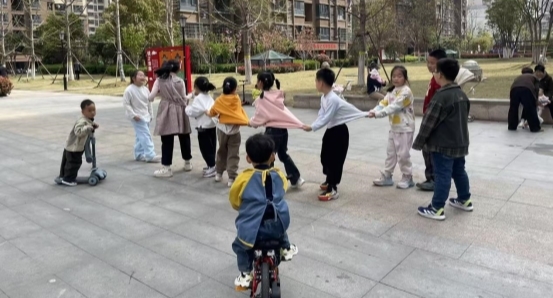 户外运动板块以“健身对接球+跳绳”为核心,延伸出打陀螺、老鹰捉小鸡、丢手绢、草坪故事会等传统游戏。健身对接球赛场通过“双人传接”“团队攻防”等游戏,锻炼手眼协调与团队配合能力;跳绳区设置“花式跳绳挑战赛”,从单人跳到双人同步跳,再到长绳集体跳,层层递进的难度设计让孩子们在挑战中突破自我。